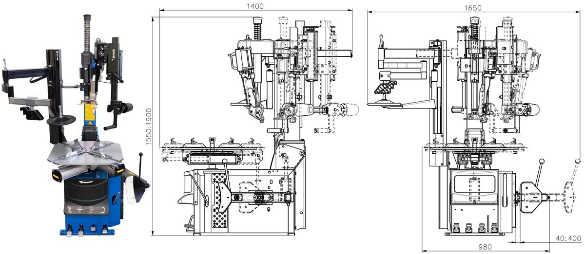 This Tyre machine is designed for a Mobile tyre fitting van solution.