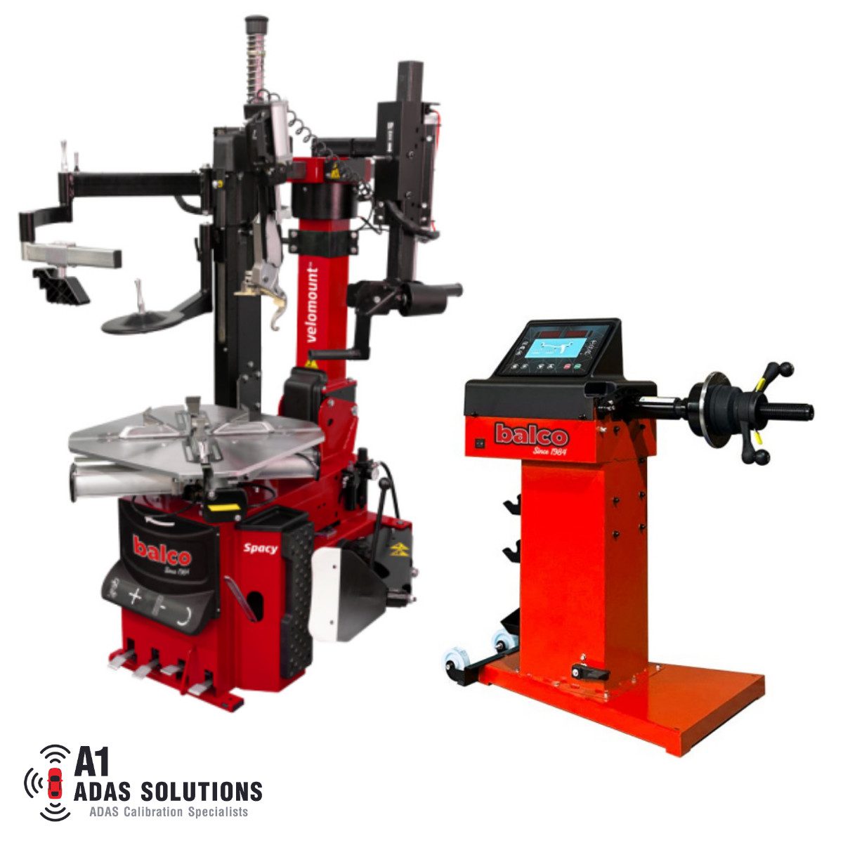 Balco velomount Spacy Tyre Changer & velospin 1000 Mobile Wheel Balancer Package