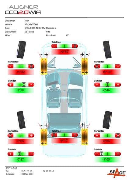 Personalised Alignment Report – Can be emailed directly to customer, or printed via a local Wi-Fi printer. Ensures customer satisfaction.