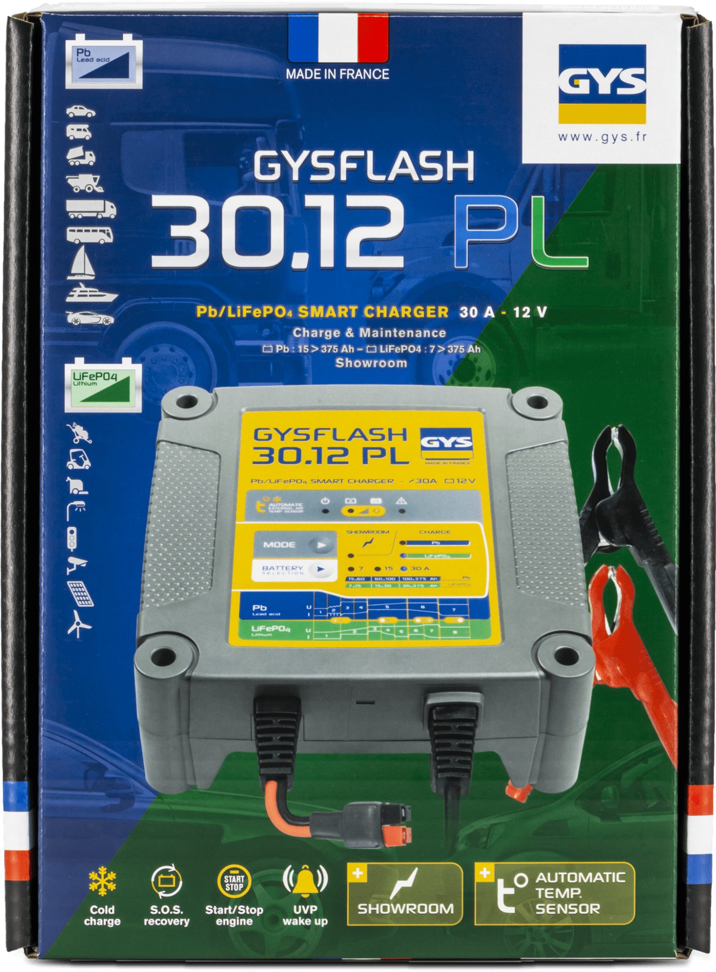 GYSFLASH 30.12 PL (UK) – 30A 12V Smart Battery Charger for Lead-Acid & Lithium (LiFePO4) Batteries